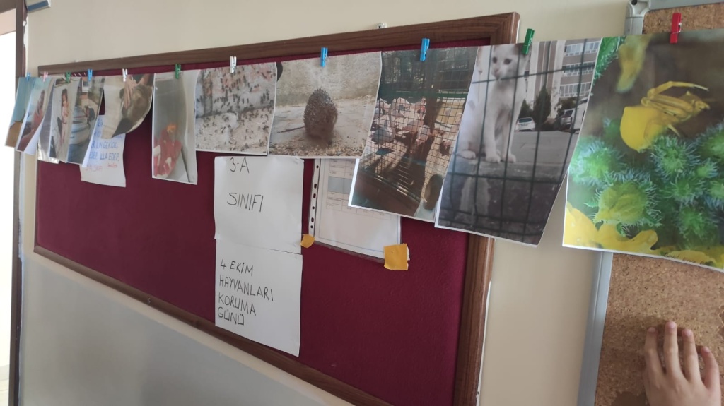 OKULUMUZDA HAYVANLAR GÜNÜ KUTLAMASI YAPILDI. 3/A SINIFI TARAFINDAN HAYVANLARLA İLGİLİ GÖRSEL OKULUMUZ ÖĞRETMENİ MUSTAFA KILINÇ VE ÖĞRENCİLER TARAFINDAN OKUL KORİDORUNDA SERGİ AÇILDI. OKUL MÜDÜRÜ MUSTAFA AKILLI ÖĞRETMENİMİZE VE 3/A SINIFI ÖĞRENCİLERİNİ EMEKLERİNDEN DOLAYI ÇOK TEŞEKKÜR ETTİ. OKUL ÖĞRENCİLERİ SERGİYİ GEZDİLER VE ÇOK BEĞENDİKLERİNİ SÖYELEDİLER.